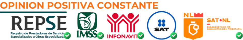 Cumplimos estrictamente con los requerimentos legales SAT, IMSS, REPSE, INFONAVIT, asi como con las normas de seguridad industrial (EPP, DC-3) para trabajos sin riesgos.